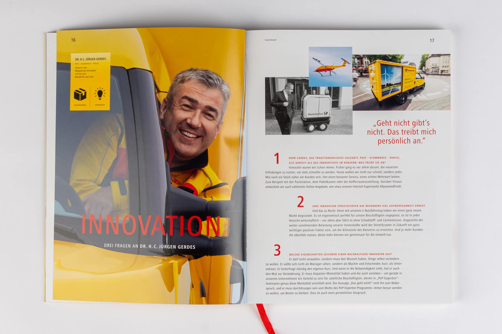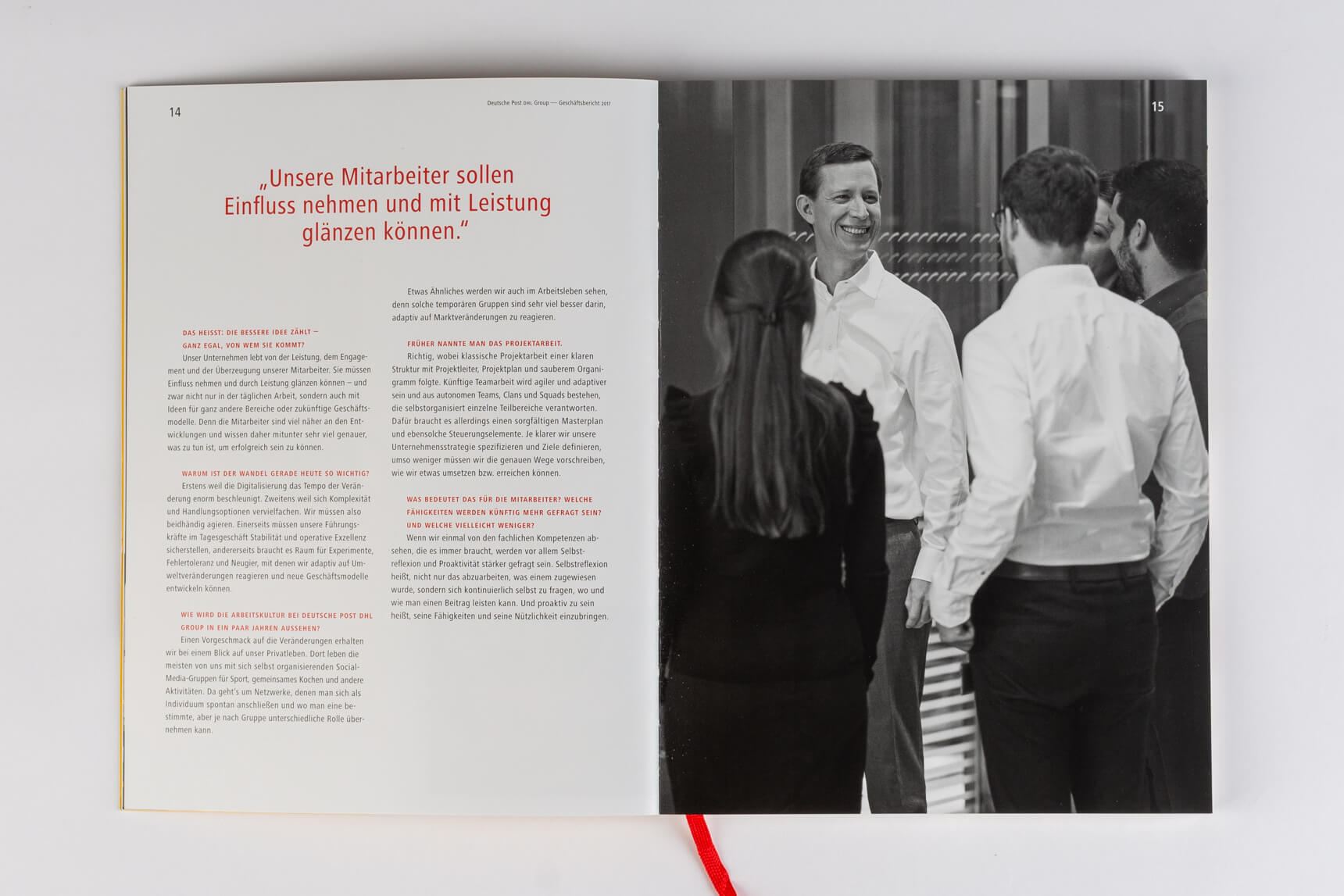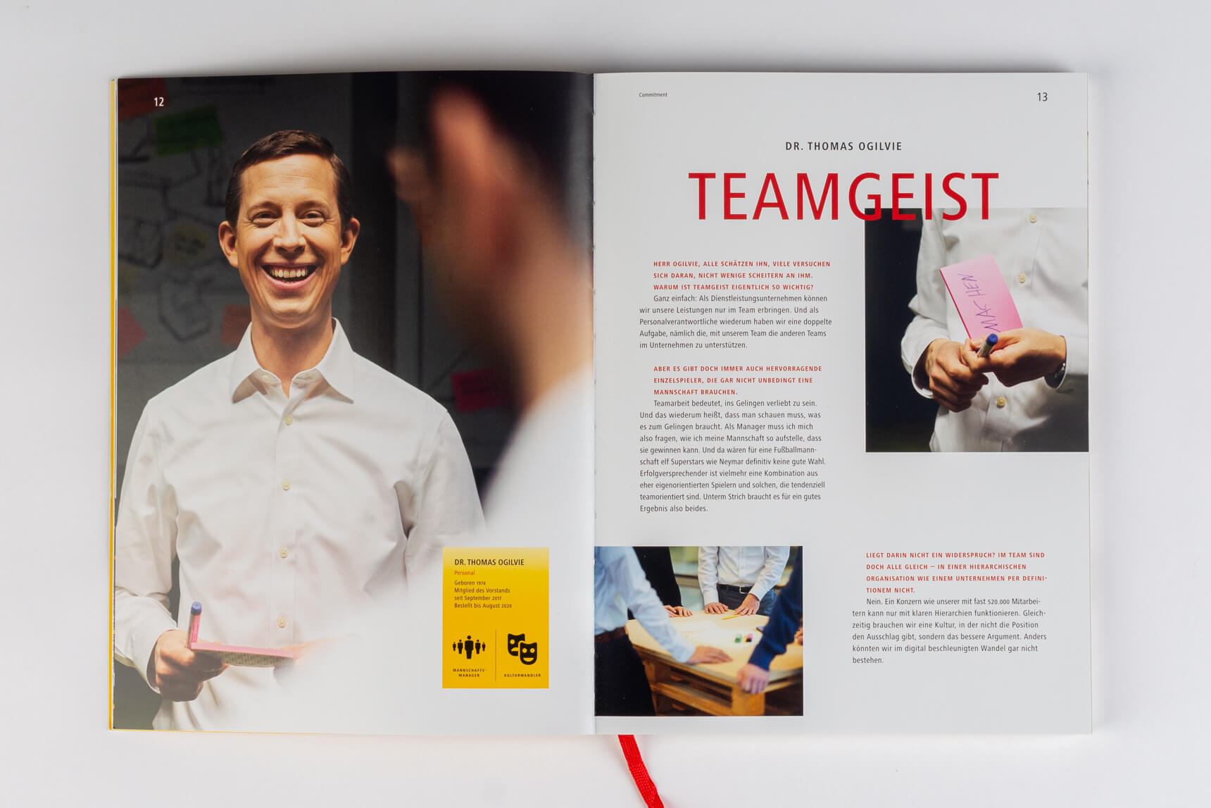 Weiterhin ist die Vorstandsfotografie von besonderer Bedeutung. Wirkt der CEO kommunikativ und agiert er auf Augenhöhe oder nimmt er eine distanzierte Rolle ein? Stellt die Abbildung des Gesamtvorstands ein Team dar, das kommuniziert und zusammenarbeitet, oder eher eine Gruppe von Einzelpersonen? Die Aspekte tragen überwiegend unbewusst auch zur Wahrnehmung der Unternehmenskultur bei.